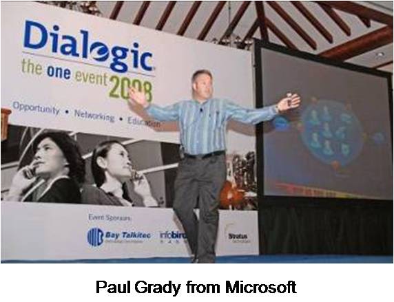 第二天上午,會議以Dialogic總裁兼CEO Nick Jensen強有力的演講開始,隨后是Dialogic執(zhí)行副總裁兼COO Tim Murray和Dialogic市場高級副總裁Jim Machi。 面向整個宴會廳的與會者,全天的會議包括了來自Dialogic產品線總監(jiān)James Rafferty和Dialogic企業(yè)產品線市場經理Bud Walder等內部演講者,和來自Yankee Group, PT. Excelcomindo Pratama 和Microsoft等外部演講者們激動人心的演講。會議結束時,由我們的合作伙伴Bay Talkitec贊助,有三個幸運贏家贏得了iPod touch 16G,iPod nano 8G和4G。
