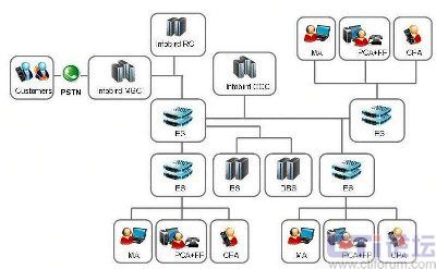 訊鳥于2007年初開始建設(shè)“啟通寶”呼叫中心平臺。該平臺的主體架構(gòu)由控制中心和媒體網(wǎng)關(guān)組成,其中在北京建設(shè)的控制中心類似于系統(tǒng)的“主大腦”,在上海、廣州等其他核心城市建設(shè)第二級的控制中心,類似于系統(tǒng)的“從大腦”?刂浦行牡墓δ苁枪芾砗涂刂,與企業(yè)客戶相連接。媒體網(wǎng)關(guān)類似于系統(tǒng)的“手腳”,其功能是采取行動,進行PSTN和IP網(wǎng)語音的轉(zhuǎn)換等處理。另外,各控制中心負責所屬區(qū)域的業(yè)務(wù),同時互為備份。比如,北京的控制中心平時負責華北的業(yè)務(wù),上海負責華東的業(yè)務(wù),深圳負責華南的業(yè)務(wù),一旦某一分中心發(fā)生故障或呼叫量超過額定處理能力時,異地分中心便能接管或分擔該分中心的業(yè)務(wù)。