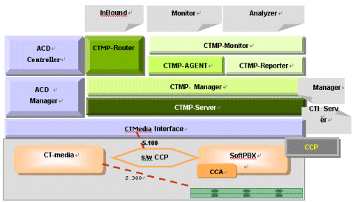 以CCP為基礎(chǔ)的CTMP Suite系統(tǒng)軟件不僅為顧客聯(lián)絡(luò)中心準(zhǔn)備了多樣化的、便利性的實(shí)用功能,而且還提供整合性管理接口與簡易方便的維護(hù)服務(wù),此外,該系統(tǒng)軟件還能根據(jù)顧客的要求,在同一平臺上兼容運(yùn)行IVR、VMS(語音郵件系統(tǒng)-Voice