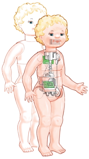 從機(jī)械上來說,夢想娃娃只是件簡單的藝術(shù)品。里面有三個馬達(dá):一個用來走路,一個用來成長,一個用來動嘴。爬行和走路是由古怪的凸輪完成的。凸輪向玩具的某邊傾斜的時候玩具另一邊的手和腳就會向前移動。然后凸輪又向另一邊傾斜,這邊的手腳又向前移動,這樣,玩具就能夠爬行和走路了。