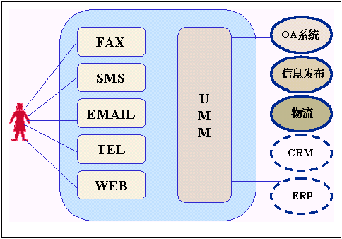 ·UMM(Uni Message Manager ) 統(tǒng)一消息管理,它有兩個(gè)任務(wù),一個(gè)是根據(jù)外部傳過(guò)來(lái)信息的不同,交給后臺(tái)不同的信息處理系統(tǒng)處理,另一個(gè)是將后臺(tái)不同的信息處理系統(tǒng),根據(jù)需要通過(guò)不同的媒介發(fā)布給用戶(hù)
