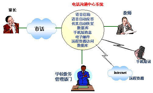 為此,很多學(xué)校都建立了自己的網(wǎng)站來(lái)作為對(duì)外宣傳和溝通的窗口,同時(shí),不少學(xué)校還建立了校園網(wǎng),但僅僅通過(guò)INTERNET來(lái)獲取相應(yīng)的學(xué)生信息和學(xué)校信息是不夠的,畢竟不是每個(gè)家長(zhǎng)都上網(wǎng)的,就算上網(wǎng)也只是偶爾,不能達(dá)到和學(xué)校經(jīng)常溝通的效果,尤其是在不很發(fā)達(dá)的地區(qū)這種現(xiàn)象尤為明顯。因此學(xué)校與家長(zhǎng)的溝通必須建立在一種十分普及的通訊方式基礎(chǔ)上,而當(dāng)前最為普及的通訊方式莫過(guò)于電話了。