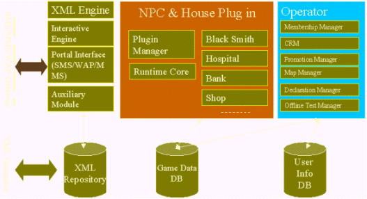 基于上述的因素,北京市萬(wàn)隆然博科技有限責(zé)任公司率先在國(guó)內(nèi)推出了無(wú)線互連游戲平臺(tái),把游戲的快速開發(fā)、游戲的運(yùn)行引擎和游戲的客戶服務(wù)管理集成在一體。方便了短訊運(yùn)營(yíng)商的運(yùn)營(yíng)。同時(shí),然博科技通過(guò)分析各類游戲的特點(diǎn)和無(wú)線交互方式的特點(diǎn)。具有獨(dú)創(chuàng)性的推出了一種游戲描述XML格式。通過(guò)然博科技提供的離線工具,游戲策劃人可以自己編寫腳本,自己定義場(chǎng)景,進(jìn)行仿真。同時(shí),上傳到實(shí)際運(yùn)行的服務(wù)器端。真正的實(shí)現(xiàn)了短信門戶的個(gè)人創(chuàng)作工具。使得短信門戶真正的可以與傳統(tǒng)的Web門戶有相同的運(yùn)營(yíng)模式。ICP可以通過(guò)出賣短信服務(wù)器的硬盤空間來(lái)實(shí)現(xiàn)與內(nèi)容宿主共同盈利的模式。