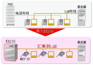 而且,在增設(shè)電話機(jī)時(shí)只需將電話機(jī)接到LAN集線器上就完成了電話設(shè)置,大幅度削減了以往繁瑣的設(shè)置過程及成本。