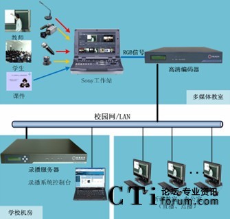 該項(xiàng)目中,高清編碼器完全支持Sony工作站輸出的高分辨率視頻信號(hào)(信號(hào)清晰度最高為1280×1024)。錄播服務(wù)器實(shí)現(xiàn)多間教室教學(xué)實(shí)況的并發(fā)錄制、直播、點(diǎn)播,并且支持大容量點(diǎn)播,充分彌補(bǔ)了Sony工作站大容量直播、點(diǎn)播限制。