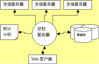 1. 以總控服務器為控制中心,控制一臺或多臺郵件發(fā)送服務器,每臺發(fā)送服務器管理一個或多個郵件隊列?刂浦行目刂凄]件列表,任務列表、作業(yè)列表,并與業(yè)務數據庫通過數據庫接口連接,根據條件提取數據,更新郵件發(fā)送列表,生成統(tǒng)計分析報告。