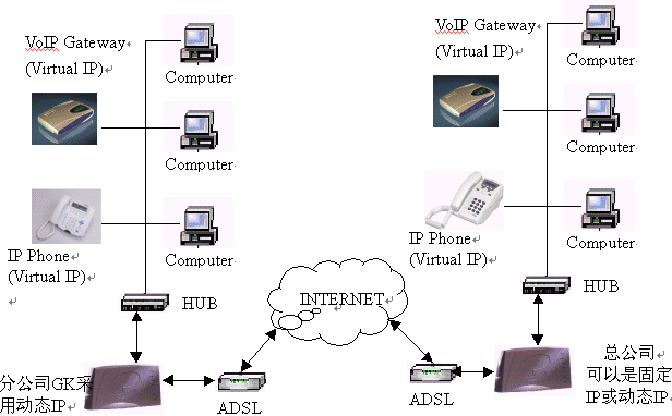 二、應(yīng)用說(shuō)明:完全基于企業(yè)現(xiàn)有網(wǎng)絡(luò)環(huán)境架設(shè)VOIP系統(tǒng),企業(yè)的各分支機(jī)構(gòu)只需申請(qǐng)ADSL寬帶網(wǎng)絡(luò)(有條件的企業(yè)可申請(qǐng)專(zhuān)線及固定IP地址,則系統(tǒng)完全獨(dú)立),安裝晶卡開(kāi)發(fā)的NOZA網(wǎng)守、IP話機(jī)或USB手柄電話,就可實(shí)現(xiàn)免費(fèi)通話。