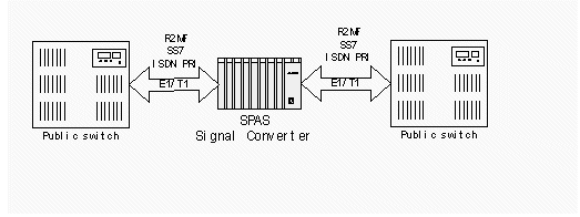 因?yàn)樾帕顦?biāo)準(zhǔn)不同,部分國(guó)外通信設(shè)備無法與國(guó)內(nèi)通訊網(wǎng)互通互連,SPAS-2000可編程交換機(jī)接口豐富,支持信令標(biāo)準(zhǔn)全面,成本低廉,可以為中國(guó)一號(hào)信令、七號(hào)信令、ISDN PRI(E1/T1)、環(huán)路信令、接入網(wǎng)V5信令等標(biāo)準(zhǔn)之間的轉(zhuǎn)換提供靈活完整的解決方案,同時(shí)當(dāng)輸入和輸出的中繼接口不同時(shí),其語音編碼可能不同,可利用多功能信號(hào)音板實(shí)現(xiàn)語音編碼的轉(zhuǎn)換(例如可以實(shí)現(xiàn)A LAW和U LAW之間的語音互轉(zhuǎn))。連接圖見圖1: