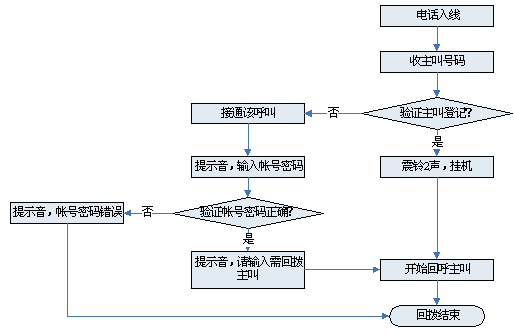 對(duì)接入系統(tǒng)的電話均進(jìn)行主叫識(shí)別,如果主叫沒有注冊(cè),系統(tǒng)語(yǔ)音提示后,主動(dòng)釋放電話 |