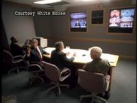 遠程安全會議,布什總統(tǒng)手持TANDBERG的遙控器親自進行操作。