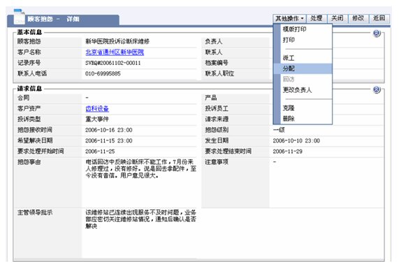 醫(yī)療設(shè)備的維修以現(xiàn)場(chǎng)服務(wù)為主,在接到客戶服務(wù)請(qǐng)求到派工的流程,依靠紙張遠(yuǎn)遠(yuǎn)達(dá)不到高效的要求,維修情況的記錄已僅僅是事后的文字記錄,通常需要層層上報(bào),更不具備匯總和統(tǒng)計(jì)分析的功能,作為領(lǐng)導(dǎo)不能適時(shí)監(jiān)控和管理在外的維修服務(wù)工程師。