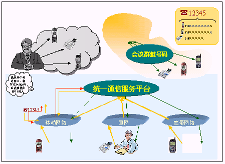 企業(yè)會(huì)議召集人通過(guò)撥打企業(yè)會(huì)議群組號(hào)碼,可以同時(shí)呼叫群組內(nèi)所有的成員參加開(kāi)會(huì);會(huì)議組員不必到會(huì)議現(xiàn)場(chǎng)也能參加會(huì)議,提高了企業(yè)的辦公效率;會(huì)議流程如下:.鐵路內(nèi)部通信