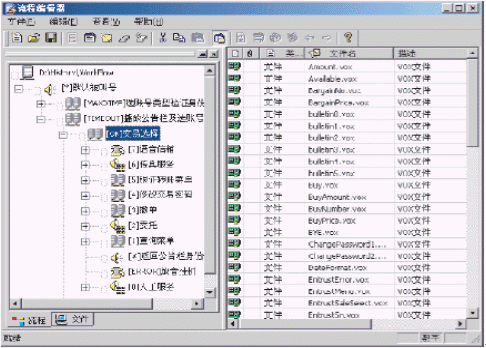·采用Windows Explorer風(fēng)格的樹形節(jié)點(diǎn)編輯呼叫流程,同時(shí)可通過查看屬性查看每個(gè)業(yè)務(wù)節(jié)點(diǎn)上下級(jí)之間的關(guān)系。使用戶對(duì)IVR的整個(gè)呼叫流程,以及各個(gè)節(jié)點(diǎn)之間的關(guān)系一目了然。