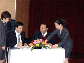在簽約儀式上,上海自來水市北有限公司董事長王希高,中國信息化推進(jìn)聯(lián)盟客戶關(guān)系管理專業(yè)委員會常務(wù)副主任郭晨東,分別代表雙方正式簽署了認(rèn)證項目協(xié)議。