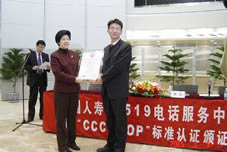 在頒證儀式上,信息產(chǎn)業(yè)部信息中心副主任、中國(guó)信息化推進(jìn)聯(lián)盟秘書(shū)長(zhǎng)劉獻(xiàn)軍,中國(guó)信息化推進(jìn)聯(lián)盟客戶關(guān)系管理專業(yè)委員會(huì)常務(wù)副主任、《全國(guó)呼叫中心標(biāo)準(zhǔn)體系》制定與評(píng)審小組組長(zhǎng)郭晨東分別向中國(guó)人壽總部及三地分公司頒發(fā)了CCCS認(rèn)證證書(shū)。