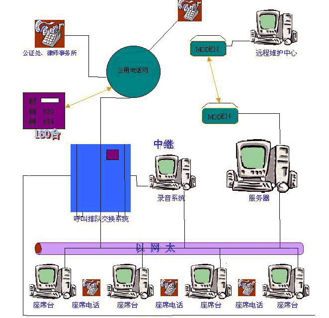呼叫中心系統(tǒng)由用戶電話交換機、CTI服務(wù)器、IVR設(shè)備、應(yīng)用數(shù)據(jù)庫服務(wù)器、人工座席客戶機和電話終端等硬件設(shè)備和應(yīng)用軟件組成