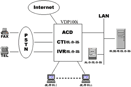 基于VDP100i構建的CALL CENTER應用系統(tǒng)如下圖: