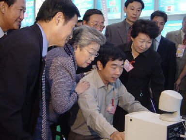 C&E 2.2、嵌入式產(chǎn)品InterSound 3.0和Talking Book電子書等。語音合成給觀眾帶來了全新的感受,流暢自然的語音合成、抑揚頓挫的唐詩誦讀吸引了無數(shù)參觀者駐足、觀賞。國務(wù)院副總理吳儀同志參觀安徽展區(qū)時,親臨訊飛展區(qū),對訊飛的語音技術(shù)表現(xiàn)出強烈興趣?拼笥嶏w陳燕總監(jiān)向吳儀副總理簡要匯報了中文語音產(chǎn)業(yè)及科大訊飛公司的發(fā)展情況,并親自演示了訊飛電信級和芯片級語音產(chǎn)品。吳儀臉上不時露出微笑,鼓勵訊飛再接再厲,把民族語音產(chǎn)業(yè)做大做強。