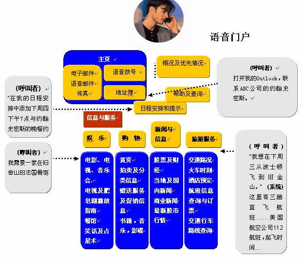 而在語(yǔ)音門(mén)戶(Voice Portal)業(yè)務(wù)中,語(yǔ)音技術(shù)讓業(yè)務(wù)內(nèi)容更加豐富多姿,有新聞、天氣預(yù)報(bào)、股評(píng)、外匯行情、笑話、郵件、短信等等。新服務(wù)的開(kāi)通和維護(hù)都變得簡(jiǎn)單快捷,表現(xiàn)形式也更加人性化。最新鮮的股評(píng)和新聞等信息全部采用語(yǔ)音合成處理,不再需要大量耗時(shí)的錄音工作,也能保證信息的及時(shí)發(fā)布和實(shí)效價(jià)值。