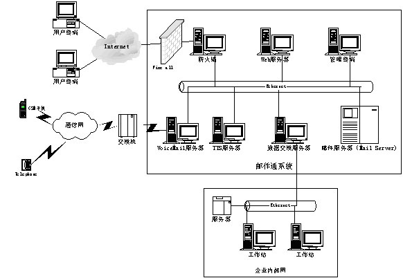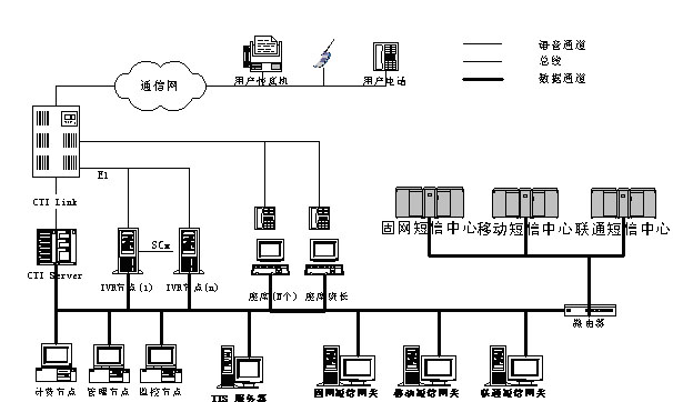對(duì)于不同類(lèi)型消息呼入、呼出的外圍系統(tǒng)設(shè)計(jì)遵循模塊化原則;系統(tǒng)內(nèi)部消息流滿足格式統(tǒng)一、可操作性統(tǒng)一、開(kāi)發(fā)接口統(tǒng)一等特點(diǎn)。在軟、硬件選型上,充分考慮系統(tǒng)的穩(wěn)定性、開(kāi)放性、經(jīng)濟(jì)性,根據(jù)不同的系統(tǒng)規(guī)模進(jìn)行詳細(xì)論證。