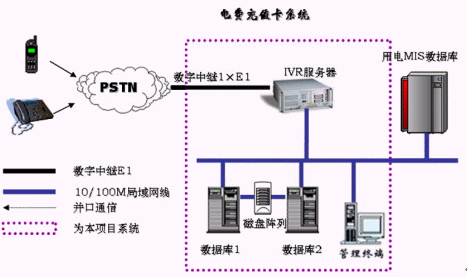 電力繳費(fèi)卡系統(tǒng)系統(tǒng)可以與原有的電力客服系統(tǒng)整合,利用已有高可靠的數(shù)據(jù)庫系統(tǒng)和IVR服務(wù)器的硬件資源,只需在現(xiàn)有系統(tǒng)和平臺上添加一套電力繳費(fèi)卡系統(tǒng)的業(yè)務(wù)系統(tǒng)。所有卡數(shù)據(jù)與信息管理都利用已有的電力營銷數(shù)據(jù)庫。