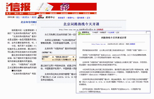 北京向?qū)峋經(jīng)過一個(gè)多月緊張的開通工作,終于于4月18號(hào)正式開通。新浪、網(wǎng)易、TOM等媒體爭(zhēng)相報(bào)道北京向?qū)У拈_通情況。