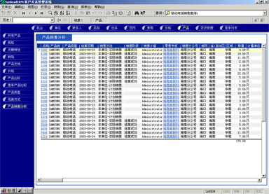管理人員可能需要對比產(chǎn)品銷售計(jì)劃與實(shí)際銷售的產(chǎn)品數(shù)量的關(guān)系,也有可能要對比某款產(chǎn)品與競爭產(chǎn)品銷售的情況,這時(shí)候可以利用產(chǎn)品銷售統(tǒng)計(jì)功能。它最大的好處是各項(xiàng)目數(shù)據(jù)普遍關(guān)聯(lián),允許任意組合查詢條件(見圖4,點(diǎn)擊下圖,可彈出更清晰的大圖)