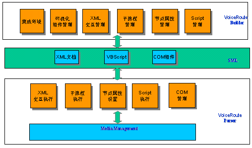 Service)等?蛻羰褂肰oiceRoute應(yīng)用,一方面可以通過(guò)語(yǔ)音和傳真與客戶進(jìn)行交互,完成一些自動(dòng)業(yè)務(wù)的受理;另一方面通過(guò)和客戶交互,可收集客戶的各種信息和客戶的具體請(qǐng)求,為進(jìn)一步處理提供數(shù)據(jù)支持。VoiceRoute是基于SML構(gòu)建的VoiceRoute應(yīng)用生成、解釋及運(yùn)行平臺(tái),SML(SynRoute