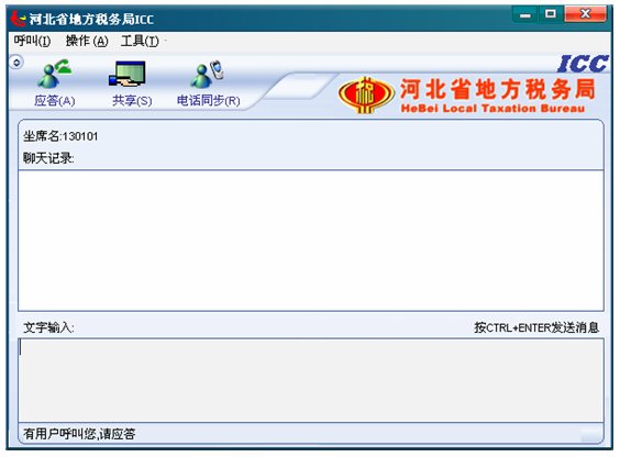 4. 如果有納稅人呼叫,左下角的狀態(tài)欄文字提示“有用戶呼叫您,請應答”,此時坐席就可以點擊應答按鈕,應答納稅人的呼叫了。如下圖所示: