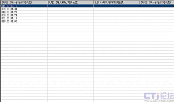 如圖4所示,管理員能得到隊(duì)列排隊(duì)的詳細(xì)信息如:來電號碼,等待時間。