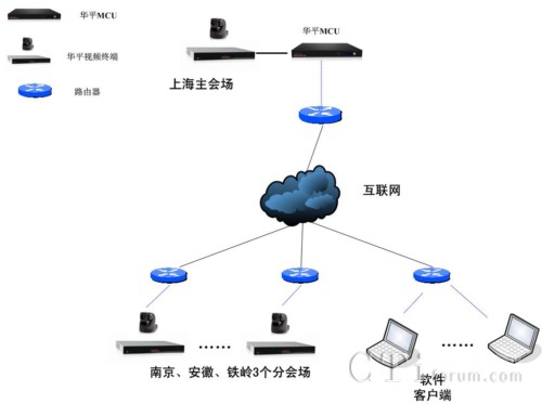 在系統(tǒng)的架設(shè)上,華平為上航特種車公司在雙線托管機房架設(shè)了一臺MCU服務器,用雙線機制解決電信、網(wǎng)通的網(wǎng)絡瓶頸問題,同時實現(xiàn)視音頻的合成和轉(zhuǎn)發(fā);在上海、南京、安徽、鐵嶺4個會議室各部署一臺標清硬件終端,達到標清品質(zhì)的視頻通訊應用;同時針對移動參會用戶,華平為其配置了4個點的軟件客戶端,使上航特種車公司相關(guān)領(lǐng)導和員工在出差情況下也可以通過筆記本電腦參會。此系統(tǒng)設(shè)計不僅具備良好的視音頻通訊效果,同時還具備強大的數(shù)據(jù)輔助功能,可滿足會議、培訓甚至是遠程協(xié)作的應用需求。