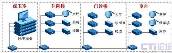 住院樓監(jiān)控點(diǎn)主要位于樓道、藥房和大廳,樓道監(jiān)控是為了實(shí)現(xiàn)各科室管理人員實(shí)時(shí)監(jiān)看樓道臨時(shí)病床,便于醫(yī)務(wù)繁忙時(shí)調(diào)配工作人員,從而保證病患能及時(shí)得到醫(yī)護(hù)服務(wù),而藥房監(jiān)控則是為監(jiān)看工作人員的業(yè)務(wù)操作和服務(wù)態(tài)度,同時(shí)可調(diào)看錄像以協(xié)助解決服務(wù)糾紛。門診樓監(jiān)控點(diǎn)主要位于診斷室、掛號(hào)窗口等處,其監(jiān)控需求與藥房監(jiān)控相似,用于監(jiān)看醫(yī)護(hù)工作人員的服務(wù)態(tài)度和業(yè)務(wù)規(guī)范。