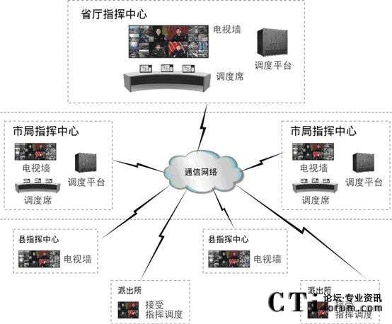 系統(tǒng)支持大型或中小型調(diào)度指揮中心部署,也支持在領(lǐng)導(dǎo)辦公室部署小型指揮點(diǎn);各個前端點(diǎn)可通過E1專線或以太網(wǎng)接入中心平臺,也可通過衛(wèi)星、無線等方式支持移動終端的接入。