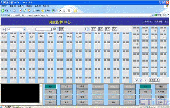 主窗口(參看上圖)共分為四個區(qū):標題欄(頂部),用戶鍵盤區(qū)(中左),中繼鍵盤區(qū)(中右)和功能及狀態(tài)區(qū)(底部),調度臺話務區(qū)(左下)下面介紹調度指揮臺的各種功能,這些功能也可靈活的進行組合使用: