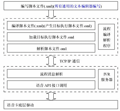 本系統(tǒng)平臺在設(shè)計時,綜合考慮各種電話語音業(yè)務(wù)的應(yīng)用需要,參考VoiceXML的規(guī)范,利用流行的XML腳本語言格式,設(shè)計出一種方便、簡單、使用的應(yīng)用平臺,在該平臺上可以實現(xiàn)幾乎所有的電話語音應(yīng)用業(yè)務(wù),免去基礎(chǔ)語言編程的麻煩。只要熟悉本平臺的腳本語言格式,通過本平臺提供的各種應(yīng)用實例腳本,就能快速生成自己需要的業(yè)務(wù)流程,具體腳本語言格式請參考《MyVXML電話流程腳本編程指南》。
