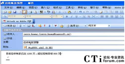 通過與ERP 集成的預(yù)警平臺,河套酒業(yè)可以根據(jù)需要監(jiān)控任意環(huán)節(jié),向相應(yīng)管理者發(fā)布預(yù)警信息。可以針對同一個業(yè)務(wù)中不同的業(yè)務(wù)動作定義監(jiān)控,可以集中監(jiān)控,也可以根據(jù)管理層的要求對特定條件異常業(yè)務(wù)進行監(jiān)管。在異常業(yè)務(wù)發(fā)生的同時,通過郵件或短信等指定形式主動向監(jiān)管進行報告。如下圖對整體應(yīng)收帳款超過指定額度的預(yù)警。