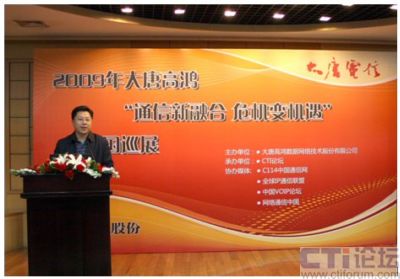 第一站北京站會議在大唐電信集團主樓315室隆重召開。此次全國巡展的主題是“通信新融合 危機變機遇”, 將在北京、上海、廣州等十余城市展開。會上展示了2009年大唐高鴻IP語音通信戰(zhàn)略新舉措,推出了一系列安全高效的融合通信系統(tǒng)解決方案。本次展會,吸引了VoIP業(yè)界和IP通信領域的眾多知名廠商和媒體,并得到了大唐高鴻在各個行業(yè)的新老客戶的積極響應和參與。