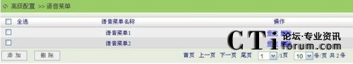 點擊“高級配置”菜單的“語音菜單”子菜單,進(jìn)入語音菜單頁面,頁面默認(rèn)顯示系統(tǒng)已經(jīng)配置的所有語音菜單列表信息,在這里用戶可以創(chuàng)建新的語音菜單、修改刪除已有的語音菜單,如下圖所示:
