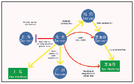 Server采用智能最佳成本路由選擇方法,更靈活的利用IDD電話,IP電話,專線電話,Internet網(wǎng)絡(luò)發(fā)送傳真,從而實現(xiàn)在達(dá)到滿意的傳真效果的同時降低通信成本。TraFax