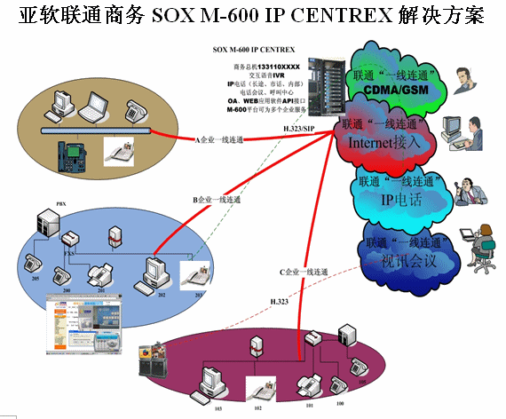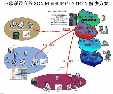 亞軟SOX融合通信解決方案也叫聯(lián)通商務解決方案,該方案是基于軟交換的可為多個集團用戶提供IP語音解決方案。SOX融合通信解決方案為集群用戶提供了區(qū)別于傳統(tǒng)集團內(nèi)部、外部的通信方式,集團無需再購置PBX及為其支付維護費用。由于SOX融合通信解決方案是置于IDC托管中心并基于IP軟交換技術(shù),所以沒有地域限制,具有集群性、可移動性等IP通信特征。