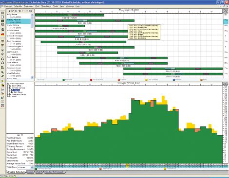 eQueue人力資源管理系統(tǒng)允許管理者在實施新的服務(wù)標(biāo)準(zhǔn)之前對調(diào)整帶來的影響進(jìn)行檢測。What-If功能可以被用于檢測各種不同的全職和兼職座席服務(wù)混合比例對成本和服務(wù)級別影響。