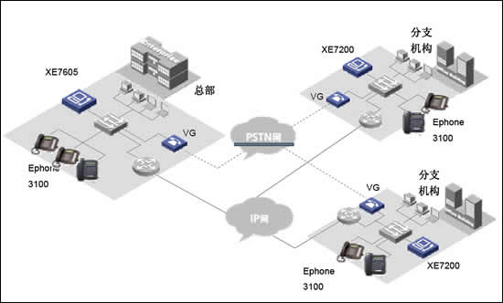 華為三康的XE7000IP語音解決方案是為企業(yè)提供融合的通信解決方案,在同一網(wǎng)絡上融合語音、數(shù)據(jù)和視頻信息,以滿足其日益增長的企業(yè)通信的要求從而解決了現(xiàn)代企業(yè)面對的傳統(tǒng)PBX語音服務和IP網(wǎng)絡數(shù)據(jù)服務分離問題。華為三康的XE7000IP語音解決方案構建在企業(yè)現(xiàn)有IP數(shù)據(jù)網(wǎng)絡之上,以集中式管理方式提供企業(yè)全網(wǎng)范圍內的呼叫控制以及管理,業(yè)務控制和信令分離使得用戶在管理上更加簡單透明,極大的節(jié)省了日常維護費用和降低了維護難度。并使得客戶可以在任意地方實現(xiàn)IP語音數(shù)據(jù)接入,使得企業(yè)分布式辦公的不再因為物理空間隔離而無法實現(xiàn)。