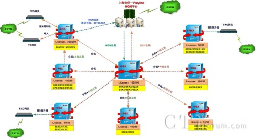 2.使用Polylink提供的VoIP語音服務(wù),用戶撥打021-3319XXXX號碼時,電話直接經(jīng)過Polylink提供的電信VOIP線路,經(jīng)過IP傳送將電話送至IPBX系統(tǒng),再經(jīng)過IPBX系統(tǒng)根據(jù)相應(yīng)號碼選擇相應(yīng)公司進(jìn)行呼叫。