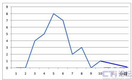 在下面這張圖中,我們看到大部分人的平均處理時長是5分鐘左右,但在8分鐘這里,又出現了一個小高峰,甚至在10分鐘這里,出現了第三個小小高峰。
