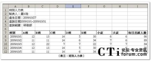 與分時人力表極為相似,但此報表顯示的是當(dāng)天每個班別的表定出席人數(shù),通常是在計算津貼或是特殊事件(Ex:大夜班座席員數(shù)量)時使用,唯因現(xiàn)場管理或班務(wù)調(diào)度之需,可能會拖動班表造成座席員表定班別之實(shí)際上下班時間與原始班別設(shè)計之起訖時間不同,管理人員需特別注意。