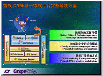 GrapeCity作為國內(nèi)第一個引入MSCRM的獨立解決方案供應(yīng)商,積累了相當(dāng)豐富的實施經(jīng)驗,在這一領(lǐng)域擁有多項"第一"。同樣,GrapeCity已為多家客戶實施MSCRM3.0獲得成功的利好消息,也為Microsoft DynamicsTM CRM(MSCRM)3.0中文簡體版的正式發(fā)布錦上添花。