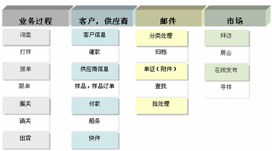 在貿(mào)易中,打樣的樣品和貿(mào)易流程中的單證都是我們的數(shù)據(jù)。走完貿(mào)易過程,這些信息都散落在郵件中和過去不在重現(xiàn)的日常工作過程中。