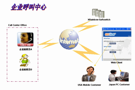 企業(yè)呼叫中心通過WEB方式解決可以提高10倍成交機(jī)會,您的客戶將享受“在線客服”的免費(fèi)電話服務(wù)。很多人在訪問商業(yè)網(wǎng)站的時候可能都有過這樣的經(jīng)歷:覺得網(wǎng)上提供的資料不夠詳細(xì),希望通過詢問客服人員來獲取更細(xì)致和個性化的信息。用戶只要點(diǎn)擊一下網(wǎng)頁上服務(wù)中心的鏈接就可以和中心的客服人員進(jìn)行直接的溝通。用戶甚至不需要知道服務(wù)中心的號碼。使用戶獲得更為有效的直接通話服務(wù)。為您的網(wǎng)站建立起專業(yè)的呼叫中心,既是網(wǎng)絡(luò)推廣、網(wǎng)絡(luò)營銷的助手又是客戶關(guān)系管理的專家。
