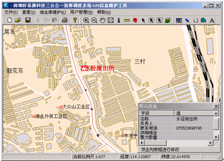 好易通三臺合一指揮調(diào)度警用地理信息子系統(tǒng)是好易通三臺合一指揮調(diào)度系統(tǒng)的一個重要組成部分,主要參考《警用地理信息系統(tǒng)建設規(guī)范》以及公安部《縣、市級公安機關"三臺合一"接處警系統(tǒng)技術規(guī)范》設計,基于MapInfo平臺開發(fā),接處警人員可運用該子系統(tǒng)對案發(fā)地點進行多中定位(模糊定位、輔助定位),多種查詢及多種調(diào)度。