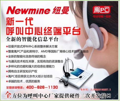 CTI論壇(ctiforum)4月28日消息(記者 張潔): 2011年4月12至13日,在五洲大酒店中國國際會議中心2011中國呼叫中心及企業(yè)通信大會(簡稱CTI呼叫中心大會)盛大召開,本屆展會展位近百個,規(guī)模2000余平方米,吸引了國內(nèi)外行業(yè)觀眾數(shù)千人次參與,并將成為2011年度國內(nèi)及亞太地區(qū)規(guī)模最大的呼叫中心和企業(yè)通信展會。紐曼騰飛公司在本屆展會上推出包括智能商務(wù)電話,錄音系統(tǒng),鳳PC(電話電腦一體機(jī))等多種行業(yè)領(lǐng)先產(chǎn)品,吸引了大批行業(yè)內(nèi)人員及普通消費者的關(guān)注。尤其鳳PC的推出更是本屆展會的一大亮點。